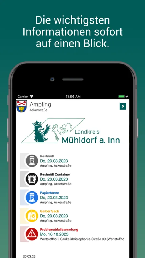 Die Abfall-App des Landkreis Mühldorf am Inn. Bleiben Sie immer informiert - über Abfuhrtermine, Annahmestellen, Problemmüll und vieles mehr.