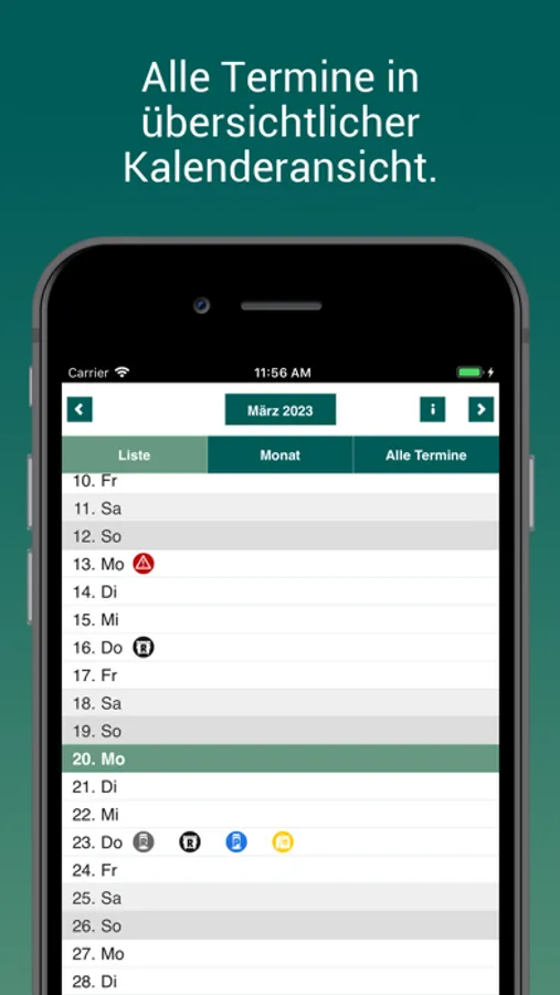 • Alle Termine in verschiedenen Kalenderansichten. Schafft Überblick in jeder Hinsicht!