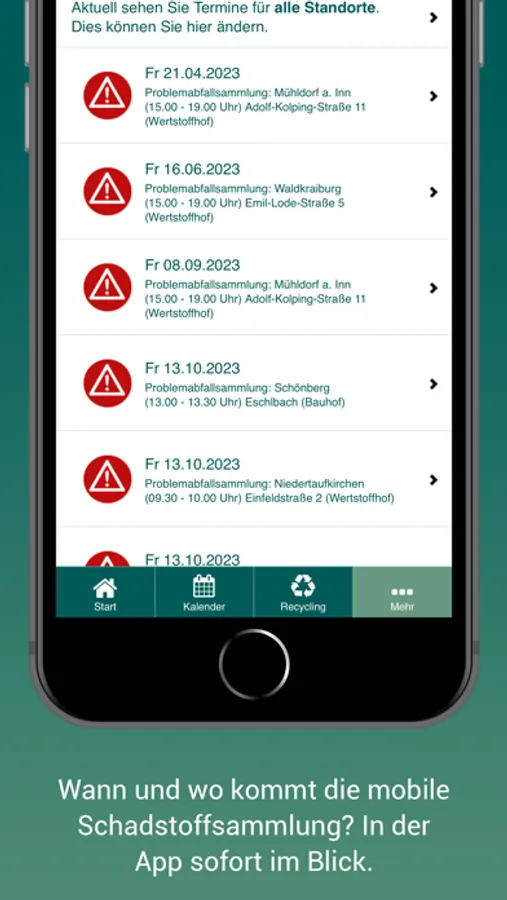 • Wann und wo kommt die mobile Schadstoffsammlung? In der App sofort im Blick.