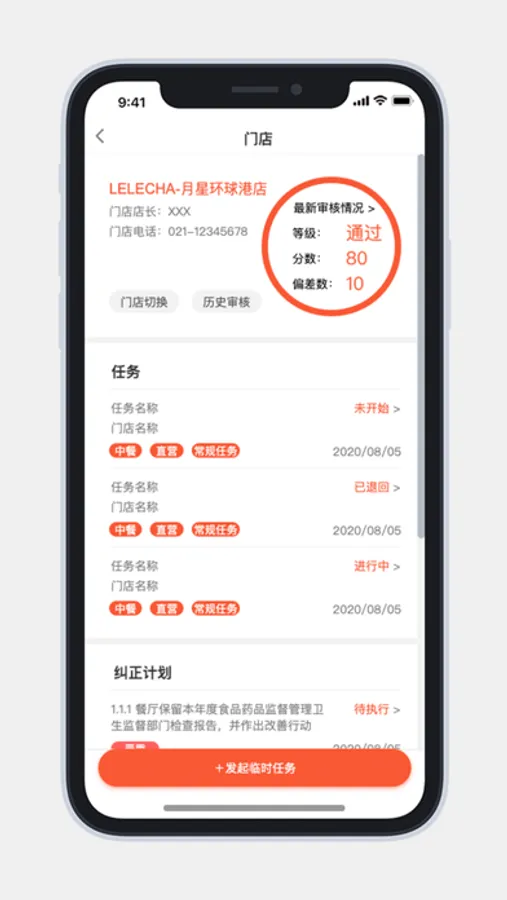 4.实时派发任务:随时随地可按企业需求实时任务分配或派发审核任务于门店自检,定时上传反馈