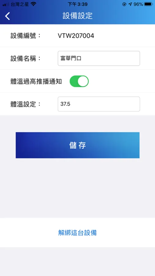 這是一款搭配溫度感測系統的App,由App去綁定系統機器,系統機器偵測到發燒會發送推播到App