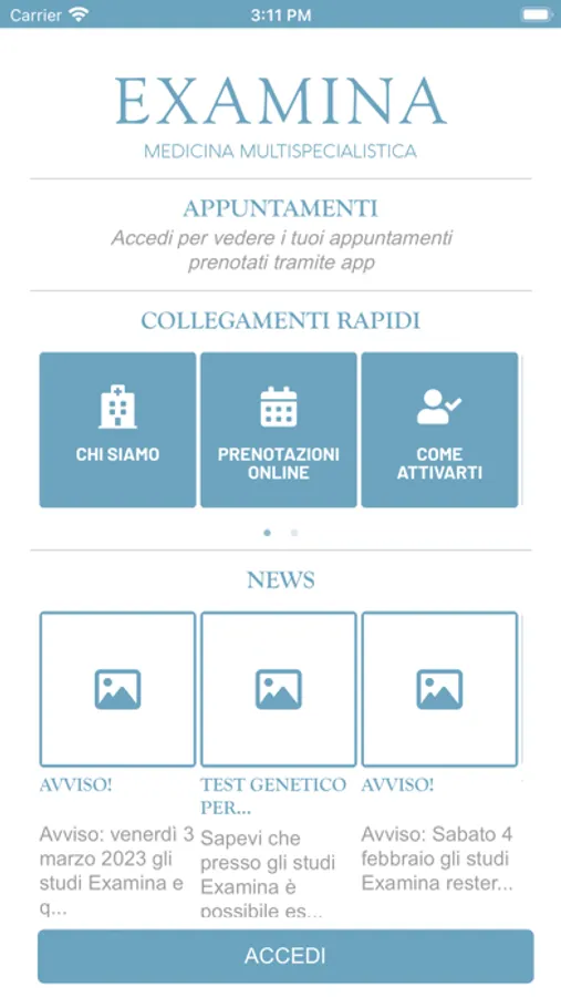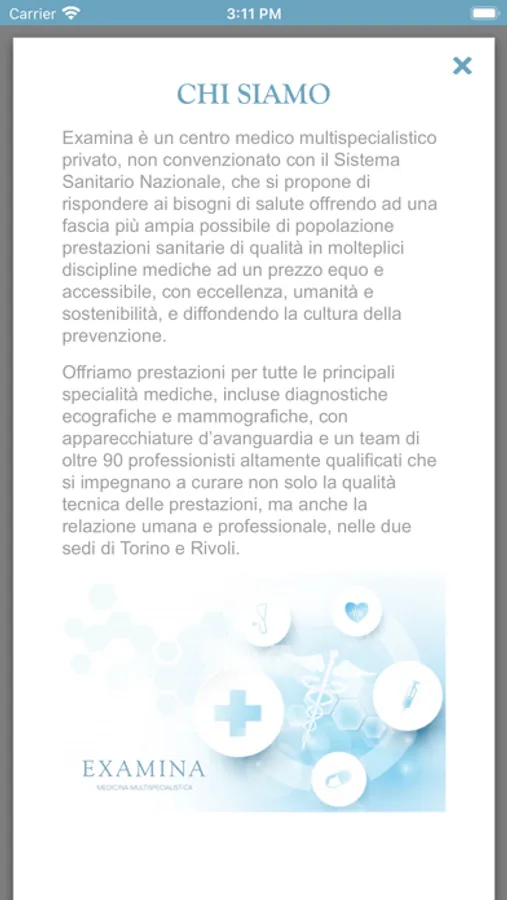 My Examina ti permette di accedere al tuo Dossier Sanitario Elettronico, scaricare e condividere i documenti, avere sempre informazioni aggiornate sulle specialità e i medici disponibili, oltre a semplificare la tua prenotazione.