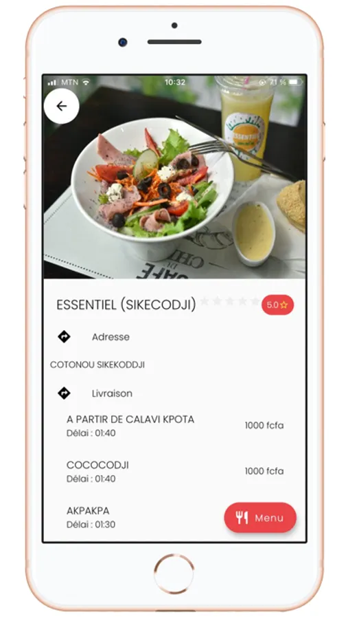 Pour nous, ce n’est pas seulement une question de repas mais beaucoup plus la nécessité de vous rendre la vie facile. Nous vous apportons vos restaurants préférés et leur plat partout où vous allez. FOODO vous permet de choisir parmi certains restaurants de la place votre petit-déjeuner, votre déjeuner ou même votre diné. . Et pour vos sorties tête-à tête en amoureux, avec FOODO vous avez la possibilité de réservation vos table.