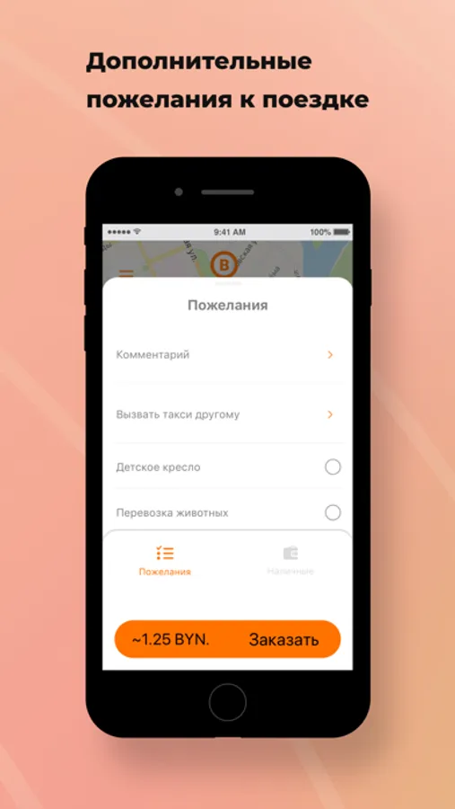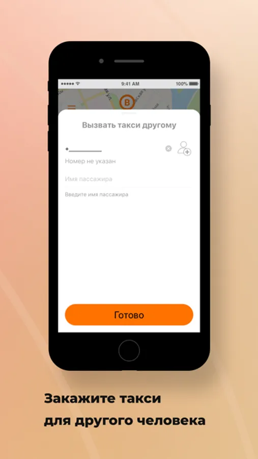 Используйте опцию “Вызвать такси другому” в разделе “Пожелания” и укажите его номер телефона. Когда такси подъедет, на указанный номер придет СМС, а вам — сообщение в приложении.