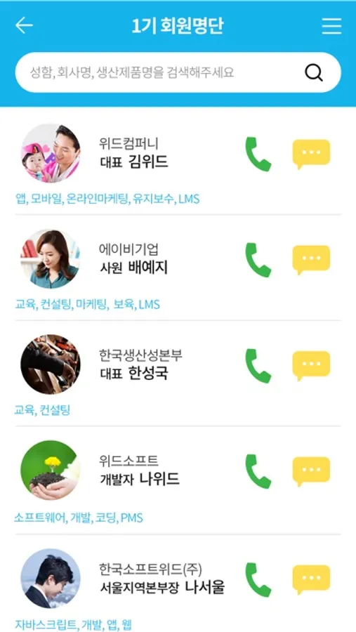 KPC-CEO앱을 통해서 수료생들은 다른 지역, 기수의 수료생에게 협업을 위한 연락이 가능합니다.