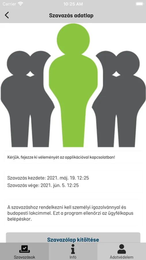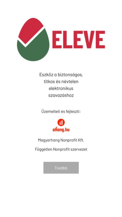 Az ELEVE applikáció egy civil társadalmi szolgáltatás, nem hivatalos és nem kormányzati közösségi szavazások lebonyolítására.