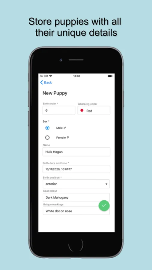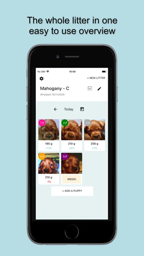 * Keep an overview of the litter and see instantly what puppy requires weighing