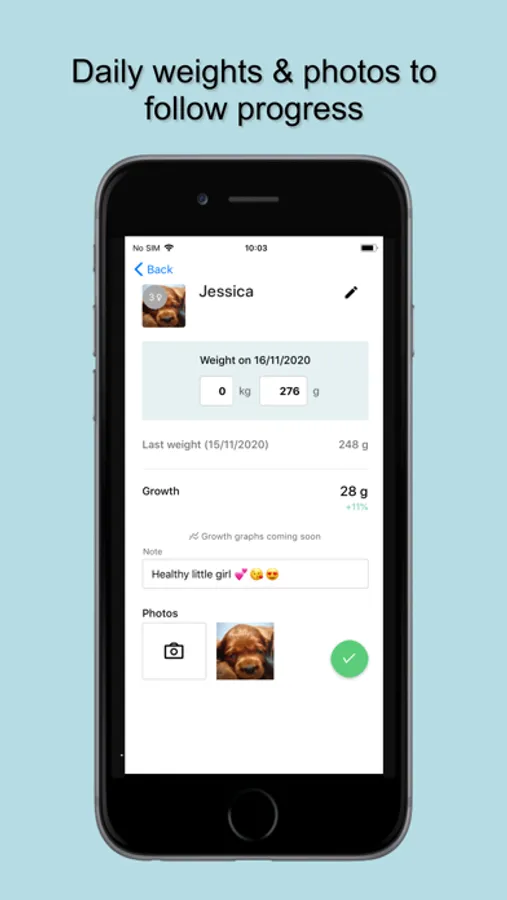 * Follow the growth of the complete litter and share a growth chart with friends, followers, and future owners