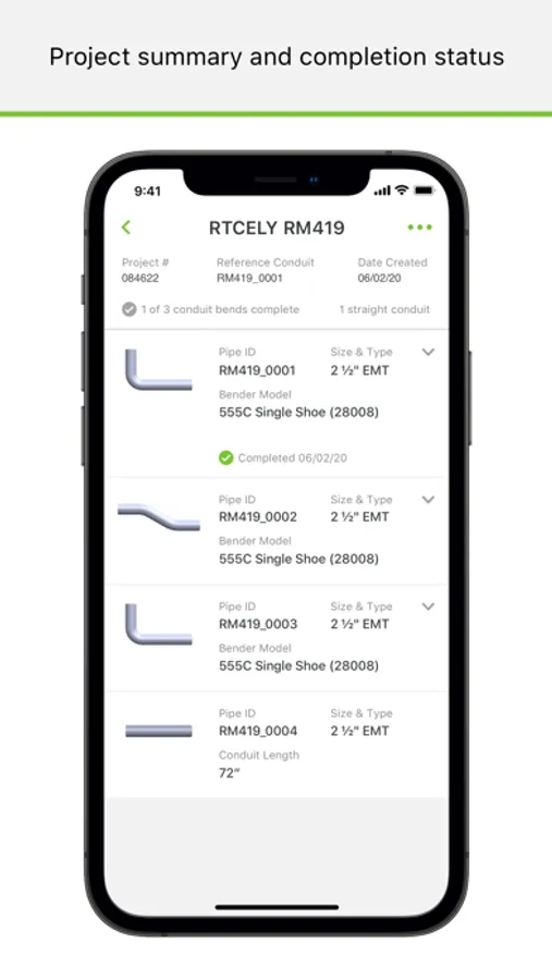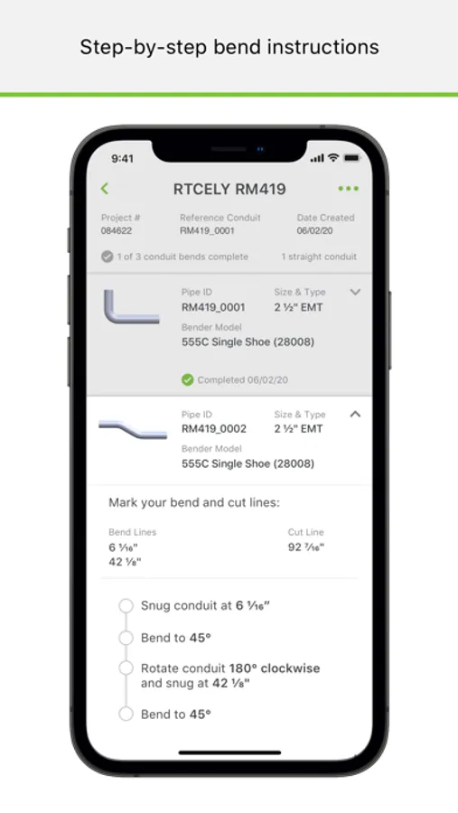 BendWorks Go is a mobile application that allows for a smooth information transfer from BendWorks® to your mobile device in the electrical prefabrication shop or job site. Upload project files from BendWorks to view project summaries and completion status, and follow step-by-step bend instructions, eliminating the need for paper files and improving productivity.