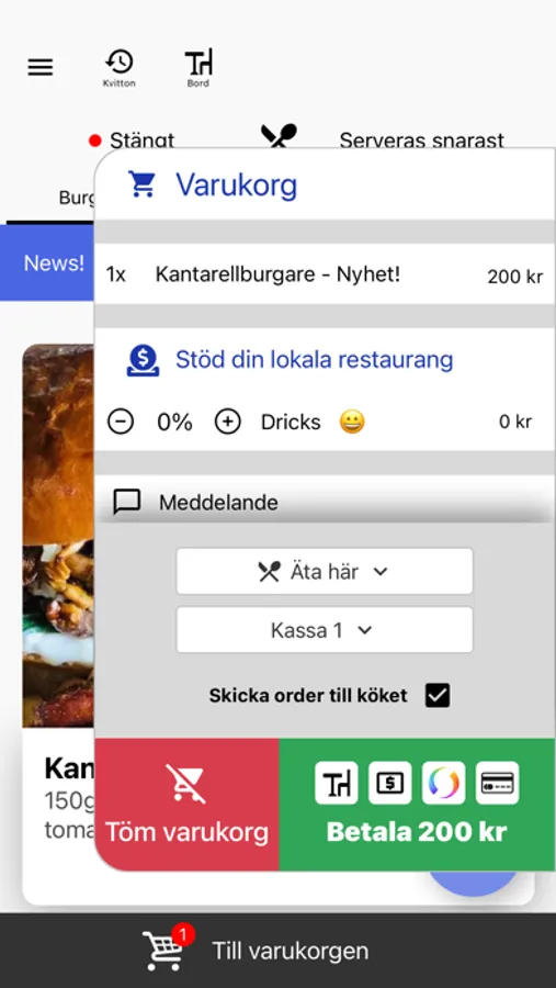 Tillsamans med The Loco App för direktbetalning av gästerna själva, ger LocoPOS Order möjligheten för restaurangen att ta betalt på plats.