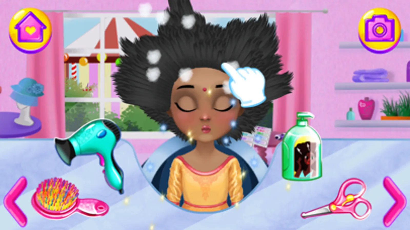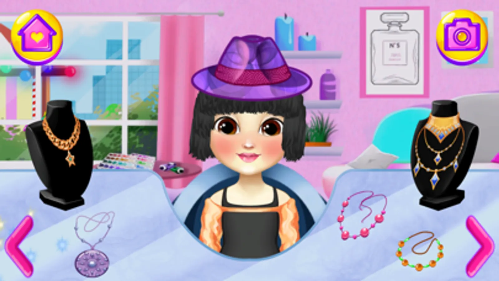 The developing game "Beauty Salon" makes it possible to fulfill the dream of any girl - create her own salon. In the game, you can straighten, curl, paint, strip, wash and style hair as you like. At the end, you can supplement the look of your model with a decoration or a hat.