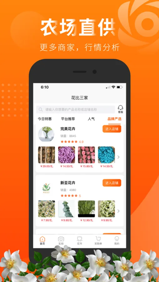 “花比三家”旨在服务和建立一个公平,公正,透明的交易平台,服务花农,服务花店,整合供应链,压缩层层中间商,逐渐实现“从花田到花店”,让花店进货无忧,让花农卖货无虑。