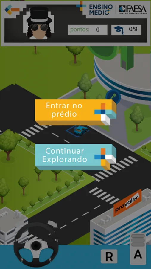 Crie seu Avatar, explore a cidade em um carro a procura dos edifícios especiais. Você está no comando. Não existe ordem nem caminho certo ou errado.