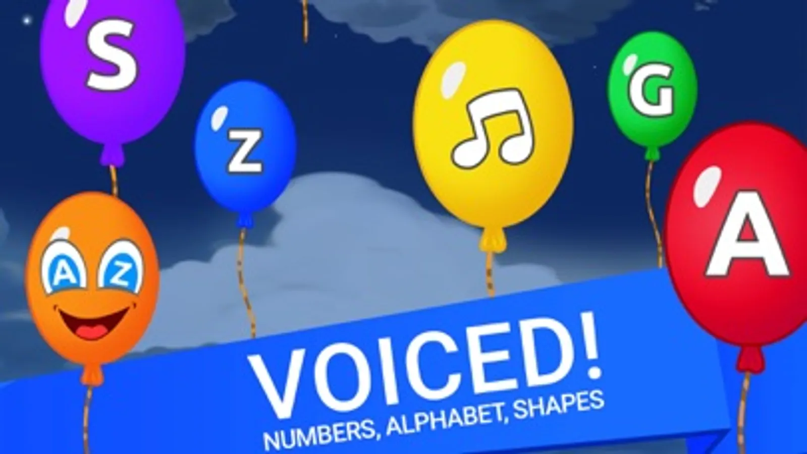 Everyone likes popping colorful balloons! Balloon Pop is a learning game for kids from 1 to 5 years old that helps them learn ABC and words, numbers from 1 to 10, colors, and shapes.