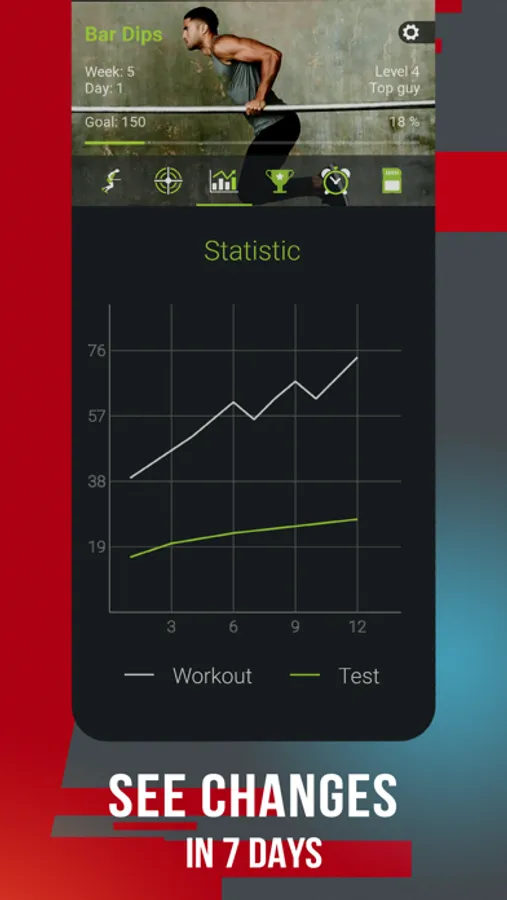 Each week you will have your personal workout goals. Achieve it to get to the next level.