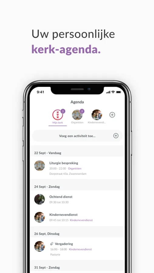 View the calendar for your entire community, but also for specific groups. Thanks to the smart group structure, each user has his own unique church calendar. Then link it to your own personal calendar and don't miss a thing!