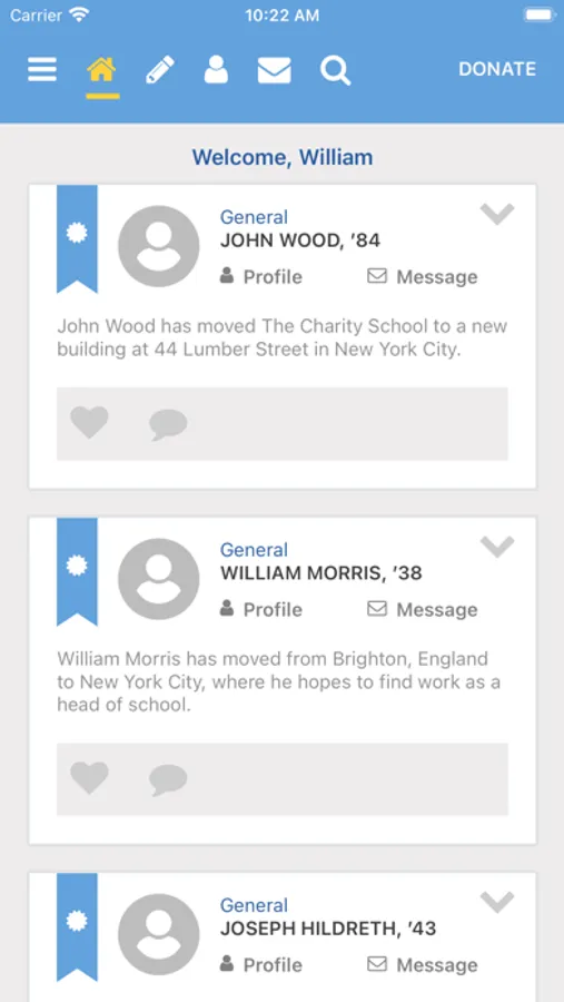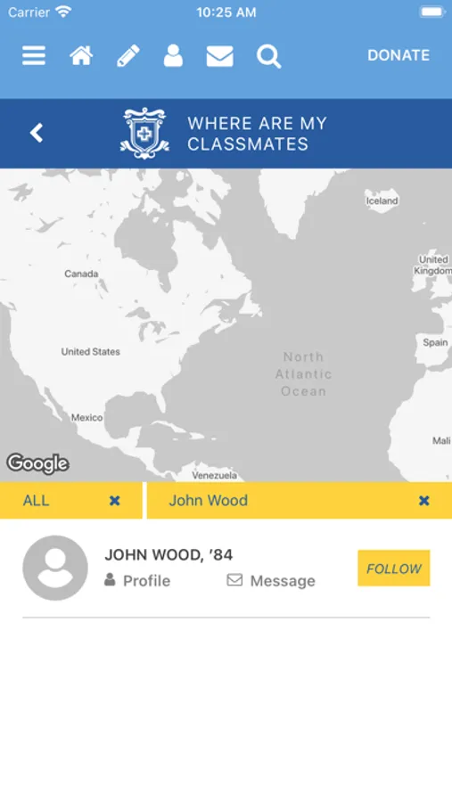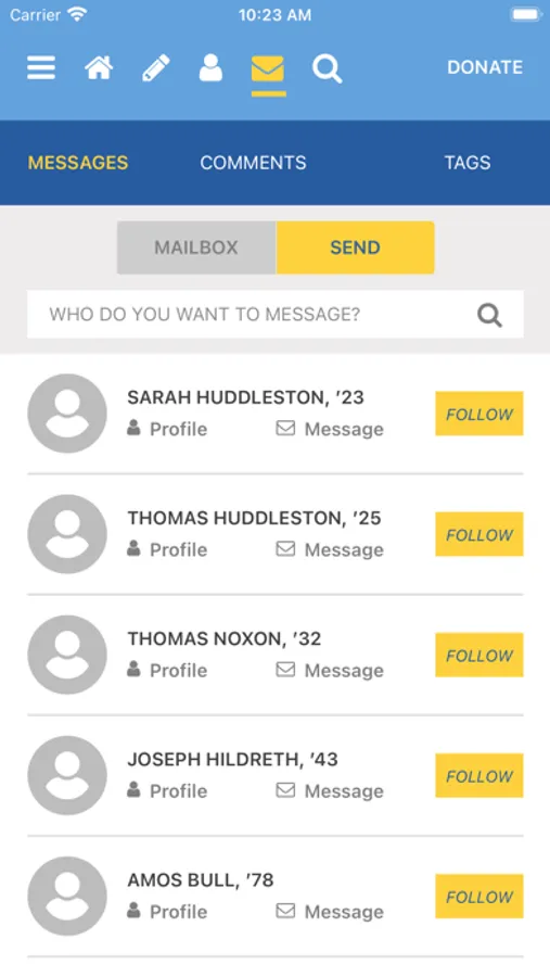 Alumni can follow other alumni, like one another's posts, and privately message one another.