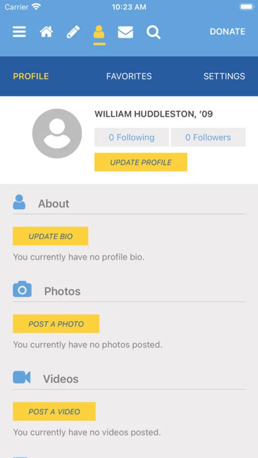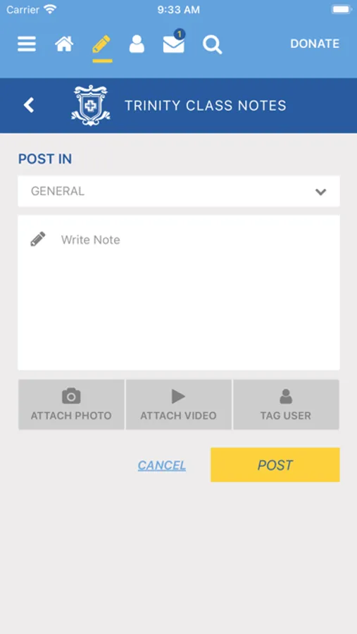Approved users can share photos, short video clips, and notes with other alumni. Approved users can choose the graduating years and categories to receive content from.