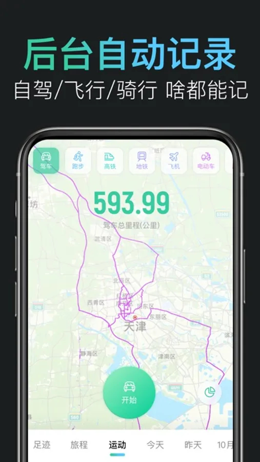 Record the type of exercise, intelligent analysis of running, cycling, self-driving and other trajectories.