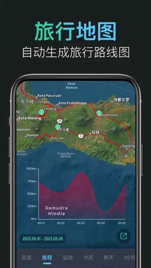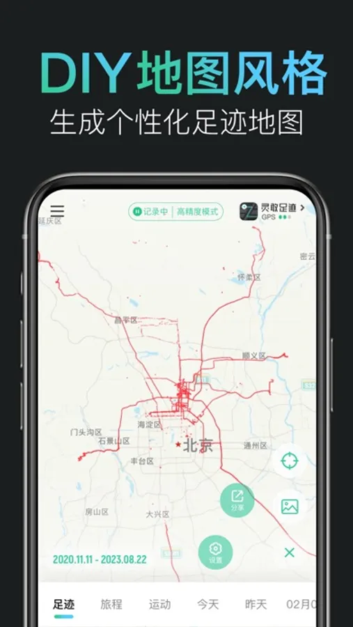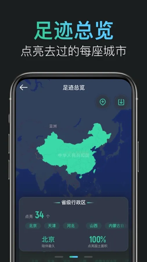Footprints can automatically record your travel trajectories and life footprints, and can light up every city you have been to and draw every travel route.