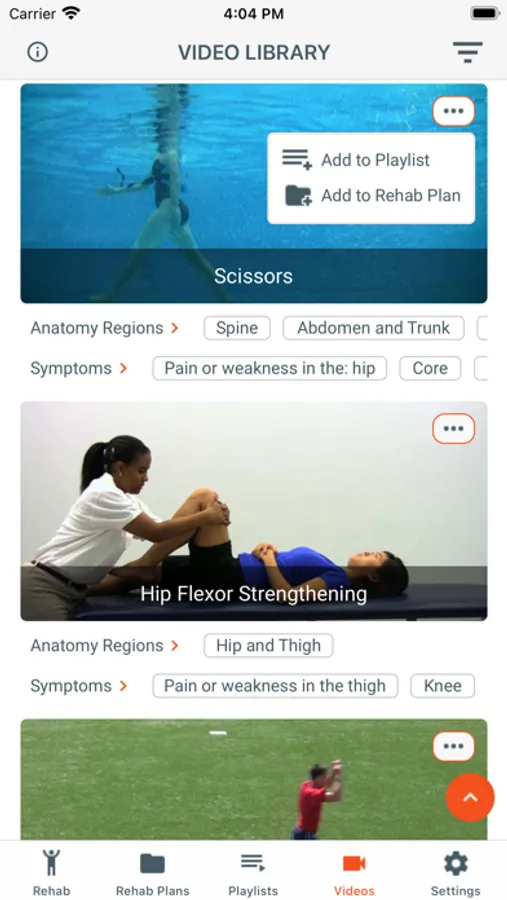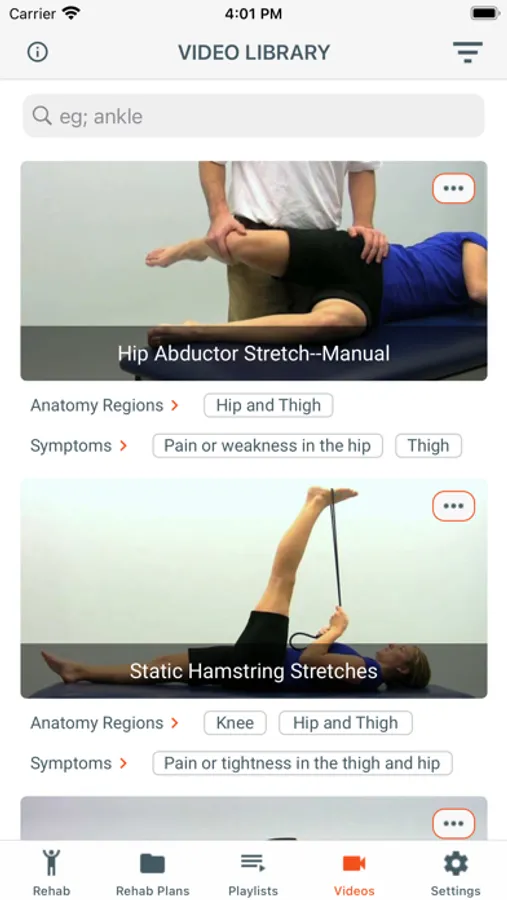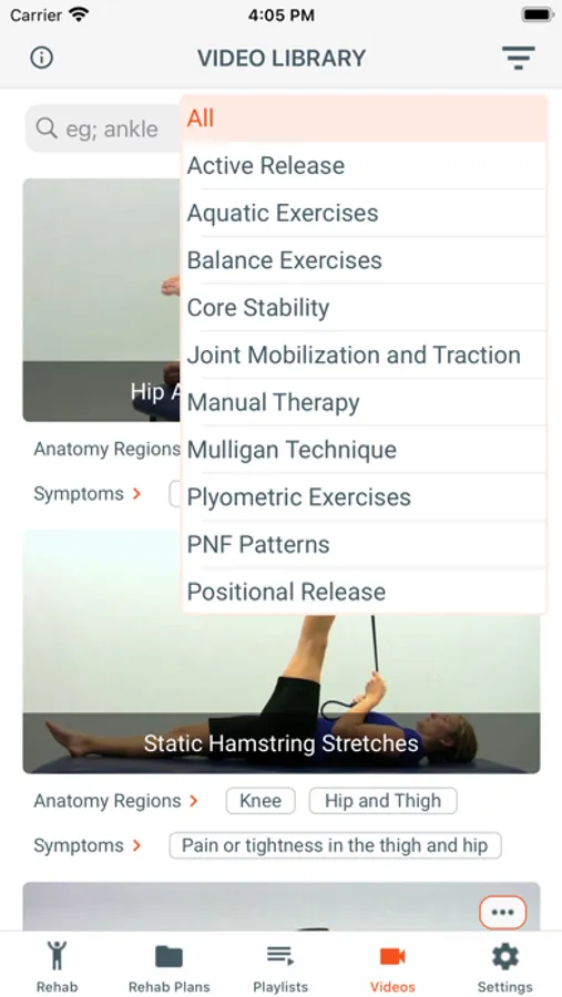 TherEx Anywhere has more than 650 videos for specific body parts to demonstrate: