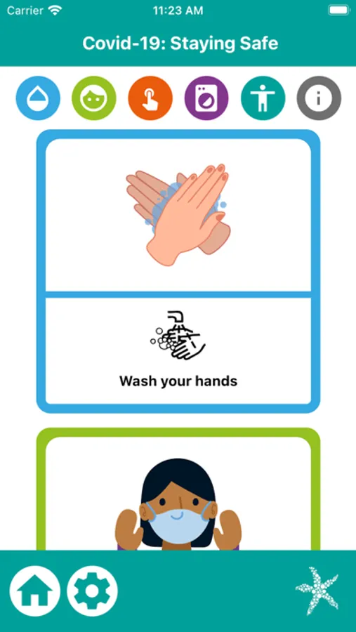 ‘Covid-19 Staying Safe’ from Starfish Labs, helps people with learning difficulties and disabilities to understand the Coronavirus pandemic guidelines and regulations. It features simple guides to wearing a face covering, hand washing and sanitising, and keeping the home clean. Content can be viewed and created in English or Welsh.