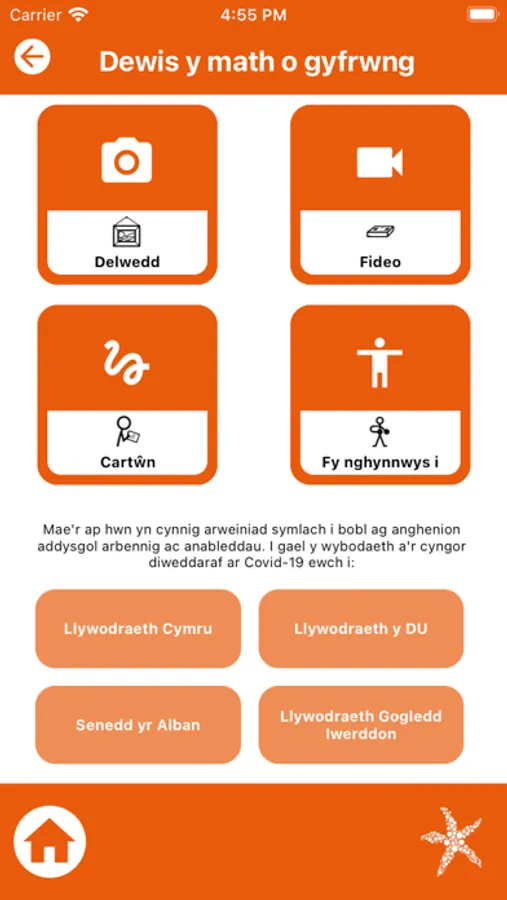This app has been part funded by Welsh Government. Starfish Labs acknowledge the support of Welsh Government and Derwen College in the creation of this app. All imagery, graphics, voice content, workflow system and development © Copyright Starfish Labs 2020.