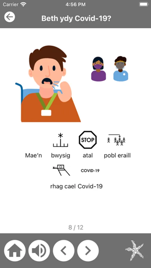 In the general guidelines content, the app uses simple cartoons, photographs, videos, voice and Makaton symbols to convey information in an easy-to-understand format. The content can be viewed in English or Welsh.
