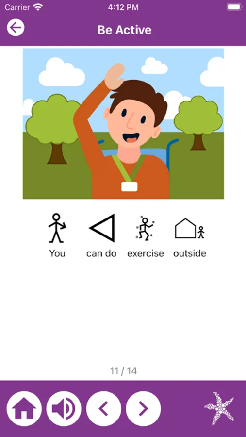 In the general guidelines content, the app uses simple cartoons and Makaton symbols © The Makaton Charity - with Makaton content supplied by Derwen College, to convey information in an easy-to-understand format.
