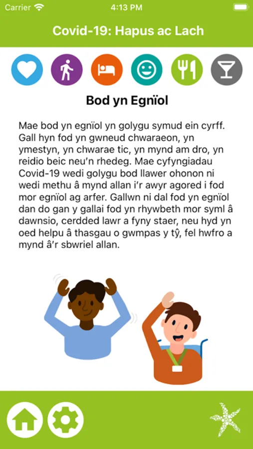‘Covid-19: Happy & Healthy’ from Starfish Labs helps people with learning difficulties and disabilities and their carers to explore ways to stay Happy and Healthy during the Covid-19 pandemic and beyond, complementing the other apps in this series: Covid-19: Staying Safe and Covid-19: Social Space. Content can be viewed in English or Welsh.