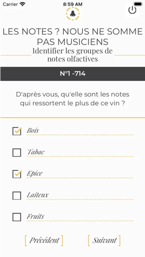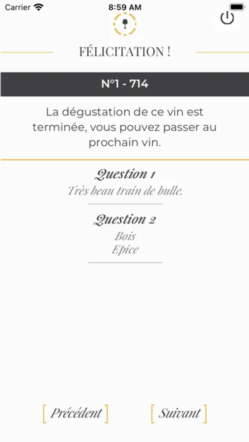 Laissez-vous guider en répondant au questionnaire au fur-et-à-mesure de votre dégustation.