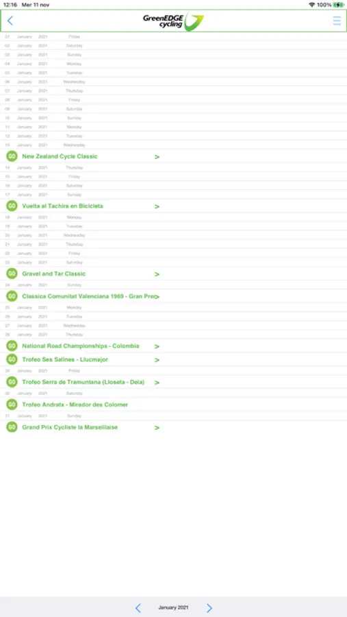GreenEdgeCycling allows you to monitor all the races and see all the details about them.