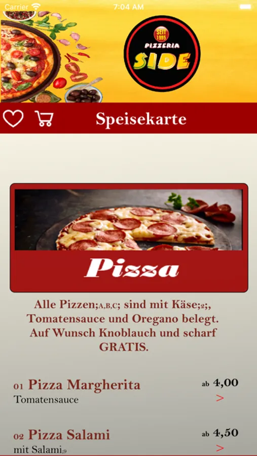 Mit dieser App kann in unserer Pizzeria Side, online bestellt werden.