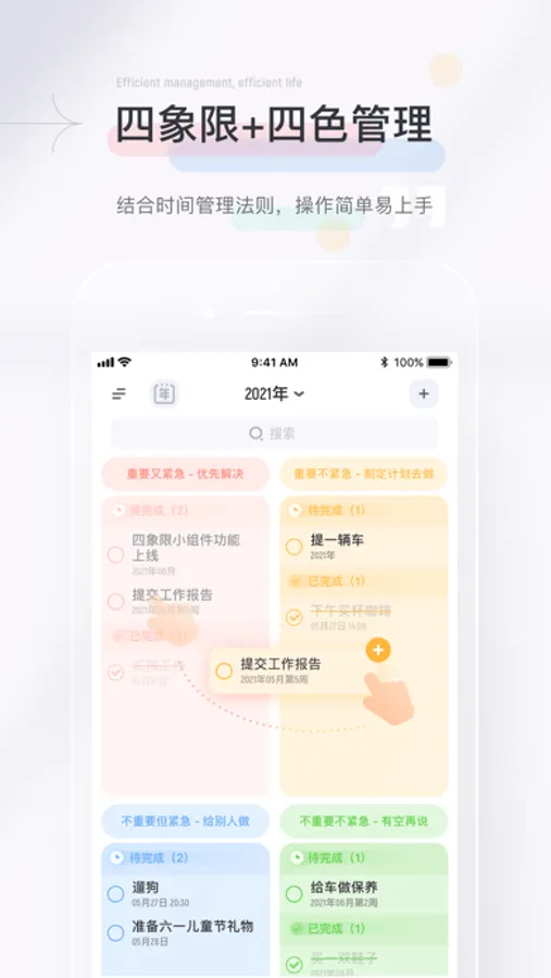 The Four Quadrant List is a time management tool, combined with the renowned management scientist Stephen. A time management theory developed by Stephen R. Covey divides to-do tasks into four quadrants: Both urgent and important, important but not urgent, urgent but not important, neither urgent and not important, the software is simple to use, to help you according to the four quadrants of time management to plan things, prioritize things, efficient management of your time.