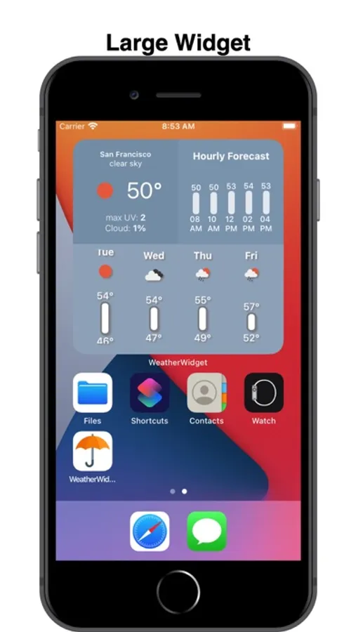 This app shows the weather on your home screen. You can select small, medium or large home widget provided by this app.