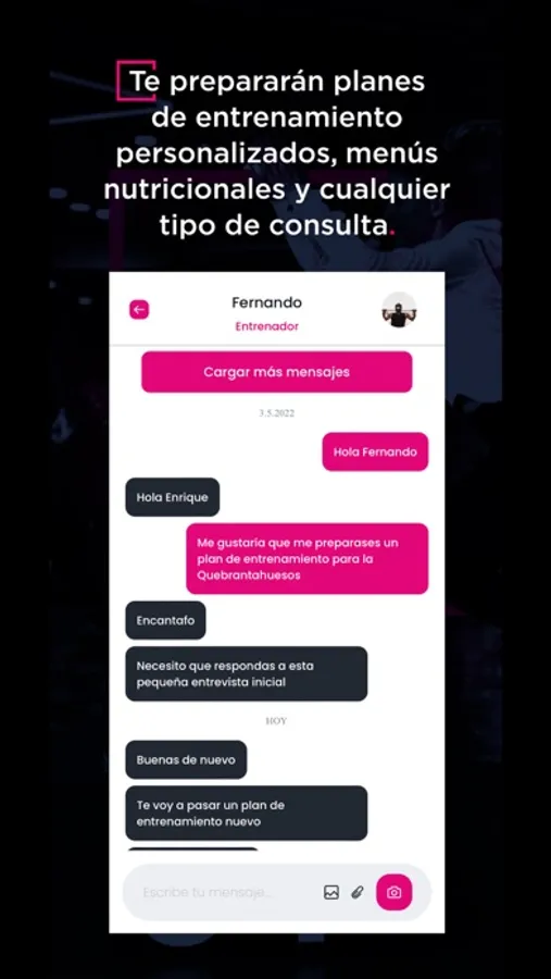 Podrás hacer cualquier tipo de consulta, recibir un plan de entrenamiento personalizado, junto a un plan de nutrición, o ejercicios de psicología.