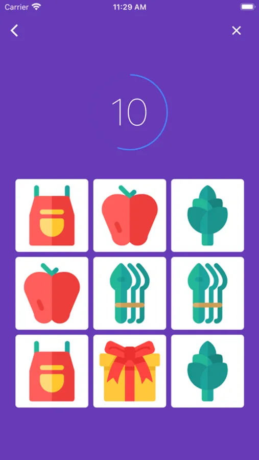 Every pack needs to complete within the given seconds in order to win the card matching memory game. The time will reduce a bit after every round winning to challenge your memory/brain.