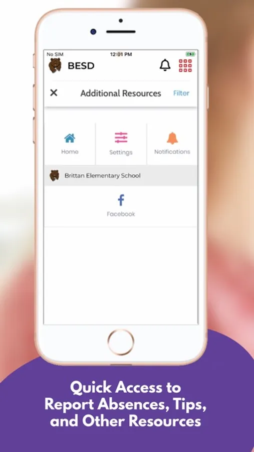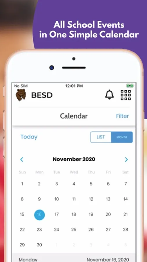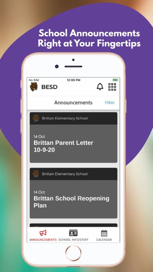 The app includes information for the district and all schools. Filter by the school your child attends to feature information for that school.