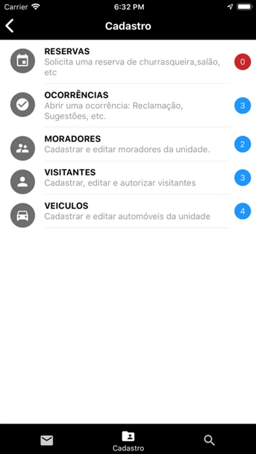 - Reservas de áreas comuns (Churrasqueira, Salão de festa, etc)