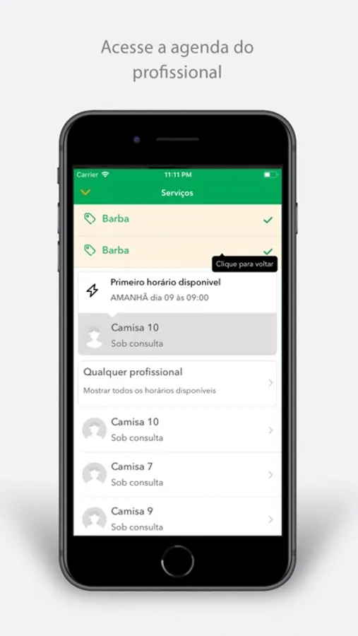 ► Marque horário com seu profissional favorito quando quiser, mesmo que você esteja no trabalho ou fora do horário comercial.