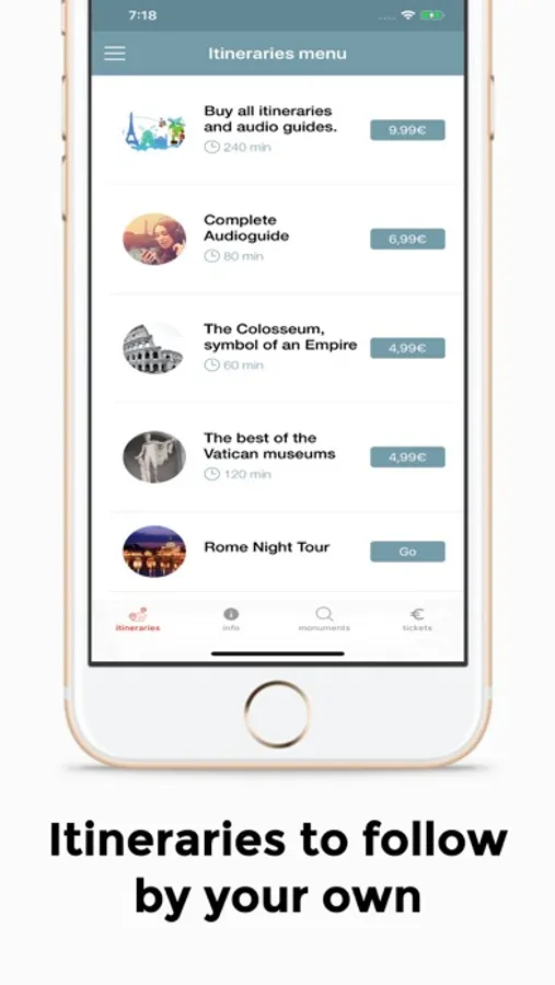 Con nuestra App exclusiva podrás descubrir la historia, las curiosidades y los mejores datos de Roma en cualquier lugar y a cualquier hora. Perfecta si visitas la ciudad y quieres hacerlo a tu ritmo pero de la mano de profesionales que te indicarán en todo momento las mejores rutas y los mejores consejos para que tu viaje sea inolvidable.