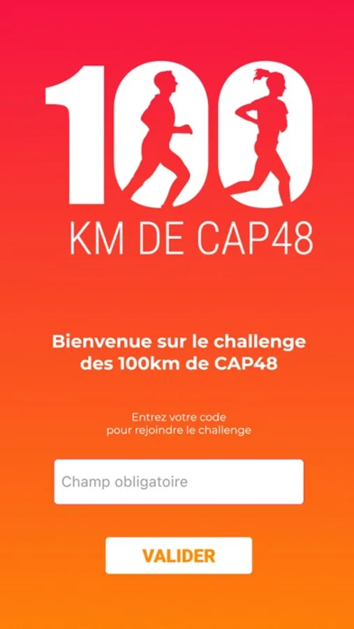 Téléchargez gratuitement l’application et renseignez le code qui vous a été fourni pour rejoindre le challenge à partir du 31/08/2023 ; les derniers inscrits pourront commencer le challenge jusqu’au 14/09/2023.