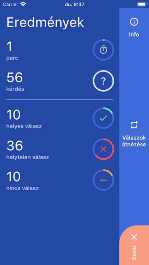 - Értékelés, statisztika – tanulást segítő, részletes statisztika és eredmények tárolása felhőben