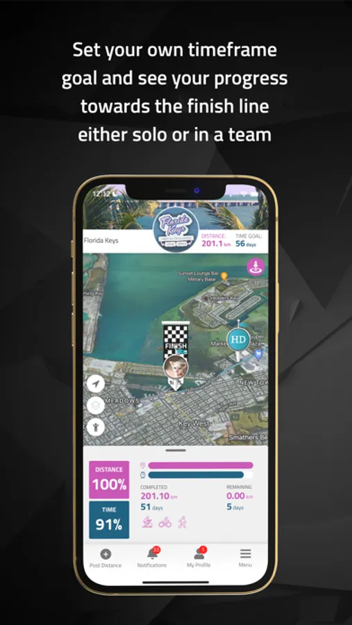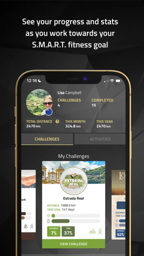 Every time you go for a run, ride, walk or any other activity you advance along the challenge route until you cross the finish line.