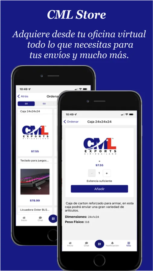 CML APP le permitirá realizar distintas funcionalidades según el tipo de usuario registrado en CML Exports Inc., entre las principales se encuentra el cálculo de los costos por envío de paquetes, la generación y reimpresión de etiquetas, facturación y ubicación de agencias, chat con los usuarios referidos, notificaciones, promociones, entre muchas otras.