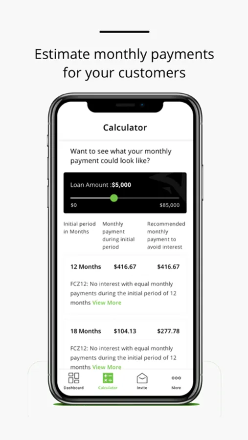 Estimate monthly payments: Use our loan calculator to help customers view their estimated monthly payments across different loan plans with ease