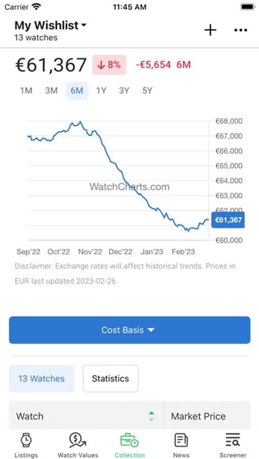 WatchCharts is the world's most powerful watch market research platform. Browse our Marketplace for the latest watches for sale across the web, and get up-to-date market pricing for over 20,000 unique watch models.