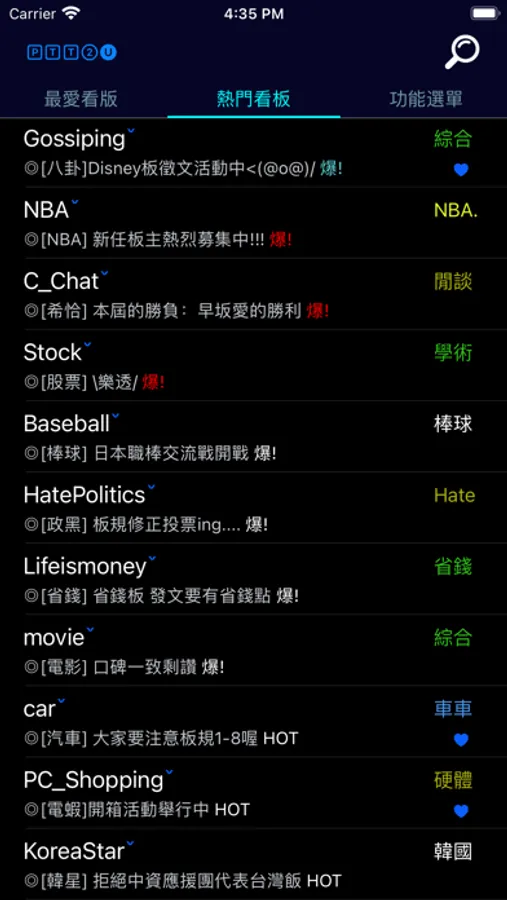 3. 熱門文章切換,蒐集各看板近日討論熱烈文章,供其快速閱覽。