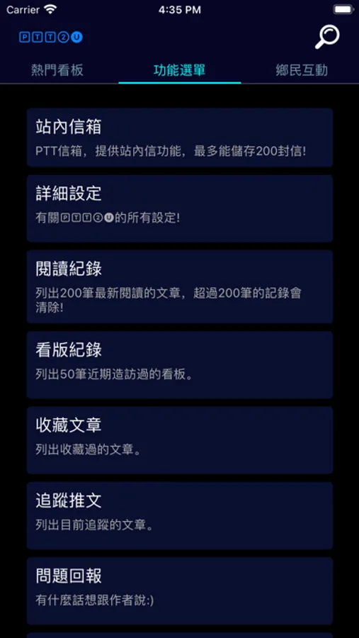 針對台灣PTT BBS做出方便閱覽的手機端app閱覽器(P2TT )。