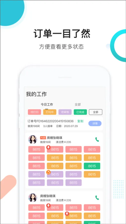 “马小二酒店端”APP基于互联网共享思维,将全国酒店清扫服务聚合在一起形成产业集群,平台线上线下融合,入驻酒店线上发布清扫房源,入驻房嫂阿姨全职或兼职提供线上接单线下清扫服务,充分整合线下闲赋劳动力,经济便捷的为酒店匹配*合适的的客房服务员,同时平台内对接PMS,可即时获取脏房自动发布,清洁打扫全流程监控,在线发布审核完成放净房,帮助酒店节省人力成本和时间成本,高效率解决用工难题